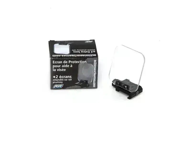 Esta lente acrílica transparente se monta delante de la óptica como escudo protector contra balas de aire comprimido voladoras y otros objetos. El soporte se monta rápidamente en cualquier carril de 21 mm sin necesidad de utilizar herramientas. Para guardarlo, la lente se puede plegar hacia abajo para que ocupe el mínimo espacio durante el transporte.