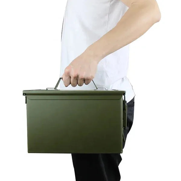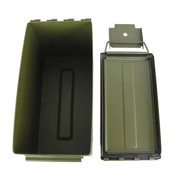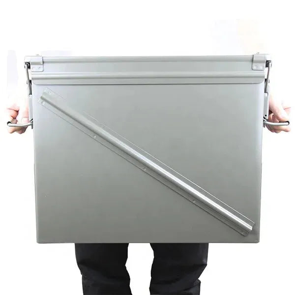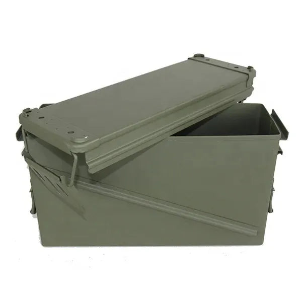Disse klassiske ammoboksene i metall er ideelle for både transport og langtidslagring. Laget i kraftig stål med gummiforet lokk og solid låsemekanisme, beskytter de effektivt mot fukt, støv og slag. Perfekt for patroner, taktisk utstyr, verktøy eller reservedeler - både hjemme og i felt.