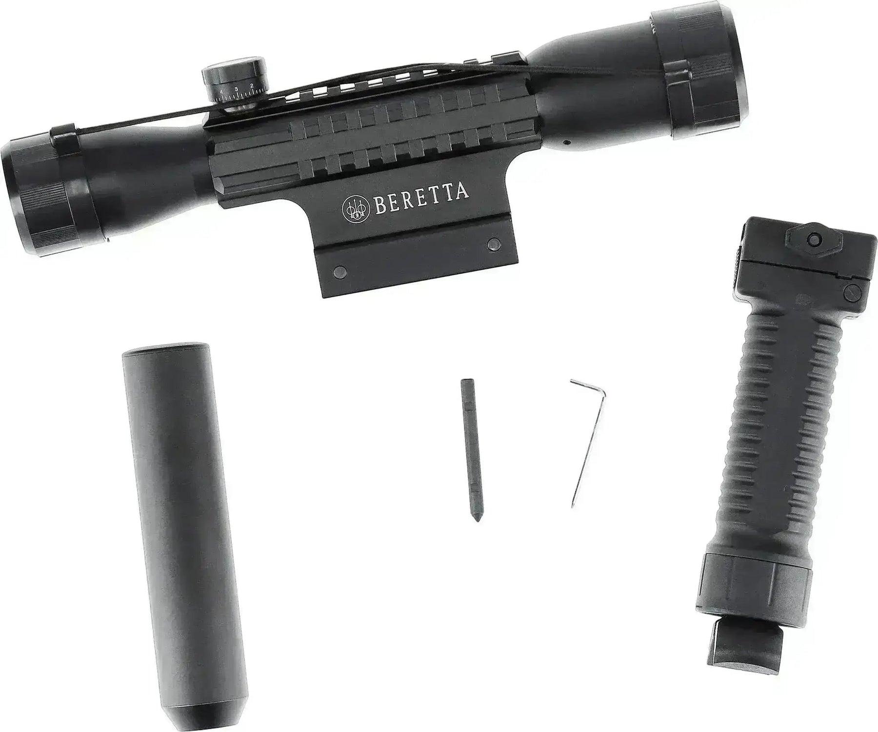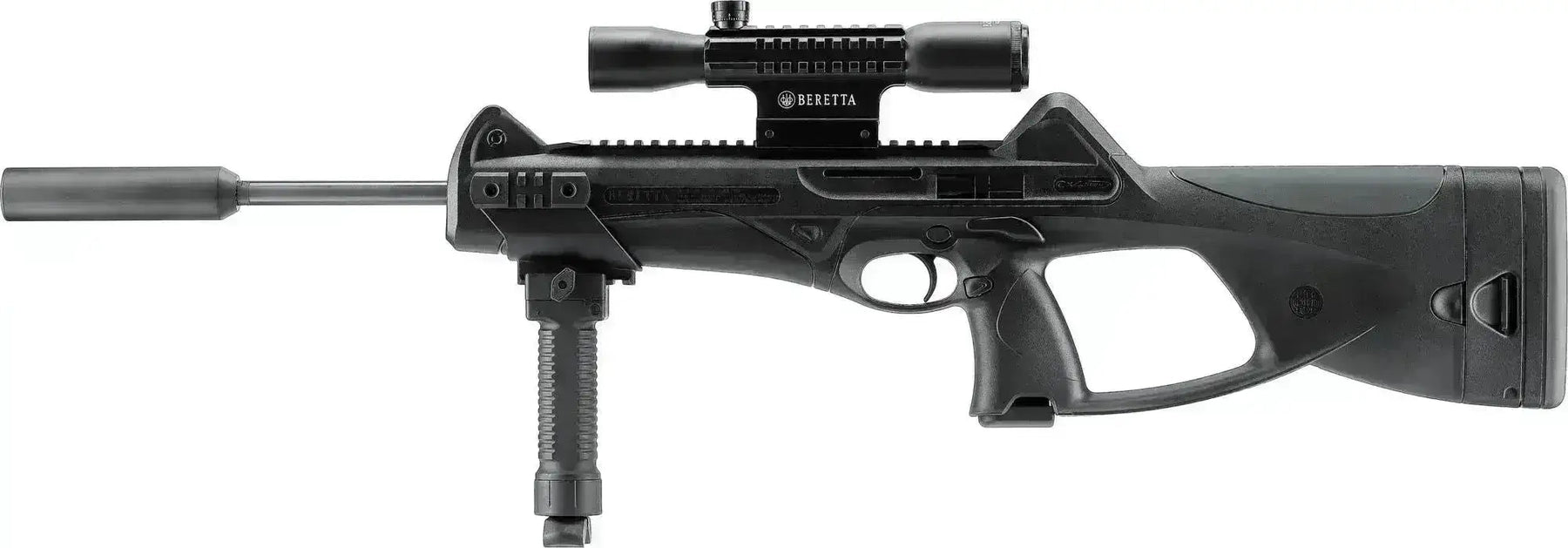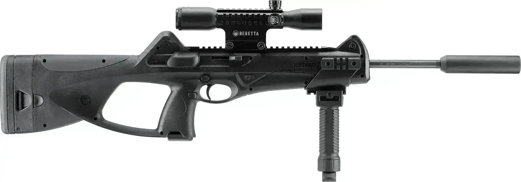Carabina de aire comprimido semiautomática de Umarex que es una fiel copia de la CX4 de Beretta. Aquí como precio de paquete con MUCHOS equipos agradables.