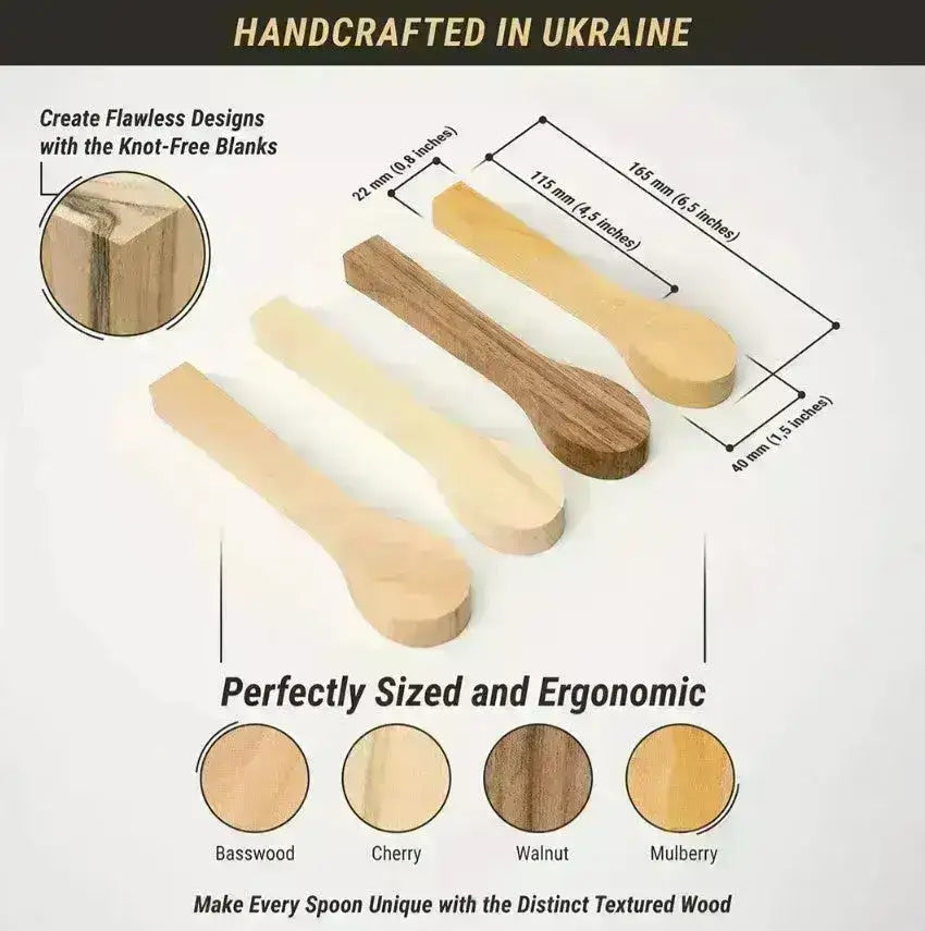 ¿Necesitas vajilla de madera para la cocina? ¡Ahora puedes hacerlo tú mismo! Aquí en Game-On encontrarás una gran selección de artículos para tallar madera y con el set de manualidades BB2 de Ucrania podrás hacer cucharas de diferentes tipos de madera para decorar tu cocina.