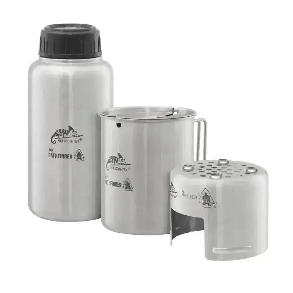 Cocina de tormenta compacta y ligera fabricada en acero inoxidable. ¡El set Helikon-Tex Pathfinder es perfecto para los amantes del senderismo y las actividades al aire libre!