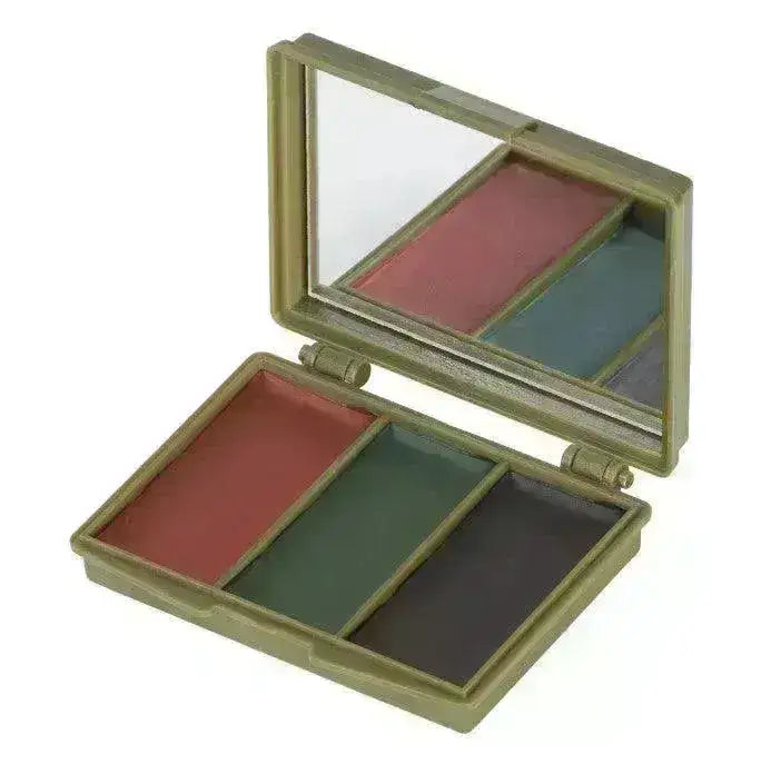 Crema de camuflaje para el rostro con tres colores diferentes. Perfecto para camuflar tu rostro y manos y mimetizarte con la naturaleza.