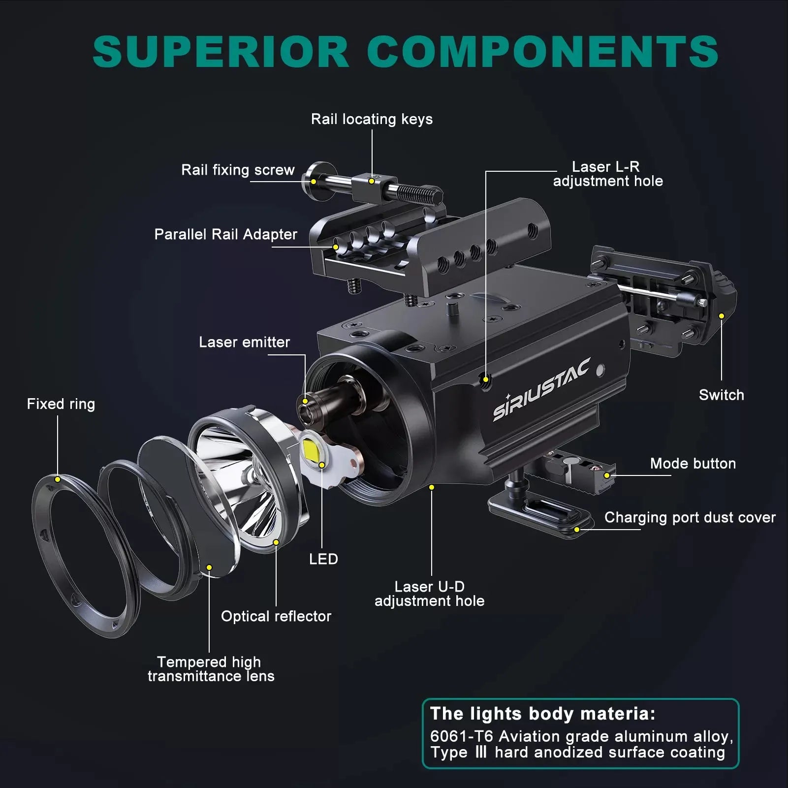 - Fuerza láser : 5MW, 520 nm (clase IIIA), ajustable para mayor precisión.