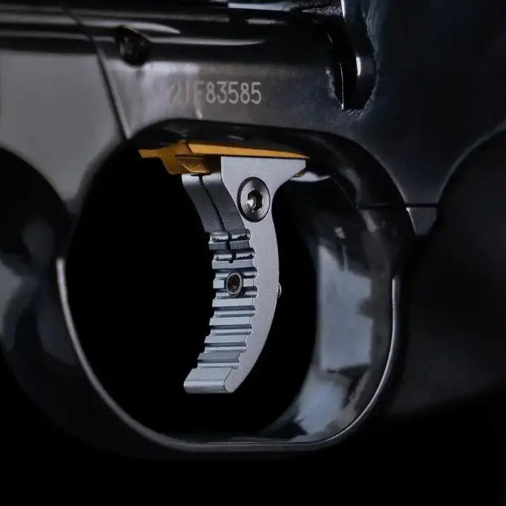 Utstyrt med spesialtilpassede CLPD‑komponenter: justerbar trigger med aluminiumsspaker, «Early Bird» trigger-hånd for bedre timing og grep, samt konkurransespiralfjærer—alle med fokus på presisjon og pålitelighet under skyting.