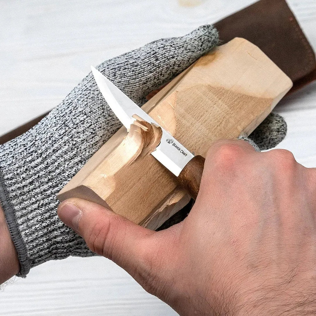 La hoja del cuchillo está fabricada con un alto contenido de carbono. ¡Beaver Craft fabrica todos los cuchillos a mano y la calidad es impecable!