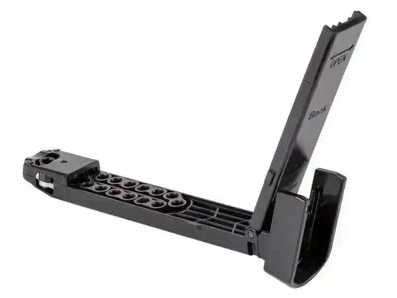 Coloque 1 cartucho de CO2 de 12 g en el cargador y ya estará listo para disparar. Una vez que el cartucho de Co2 se agota, se desecha; No se puede reutilizar. (Entonces obtienes ~60 disparos con un cartucho de CO2 a máxima potencia)