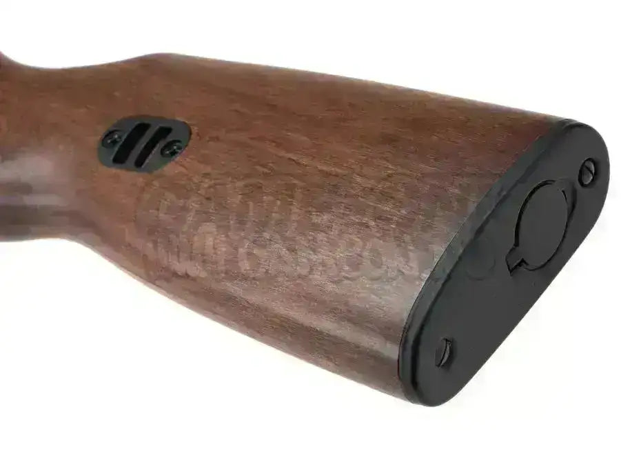 Este histórico rifle SMG ruso vio la luz en 1940 y recibió el apodo de "papas fritas" - que significa padre. El rifle SMG era conocido por tener una cadencia de fuego increíblemente alta. Esta réplica tiene un receptor de acero y la propia culata está hecha de una bonita imitación de madera. Para mayor diversión y realismo, este rifle de airsoft tiene retroceso eléctrico, que hace que el cerrojo retroceda con cada disparo y sientas un pequeño retroceso.