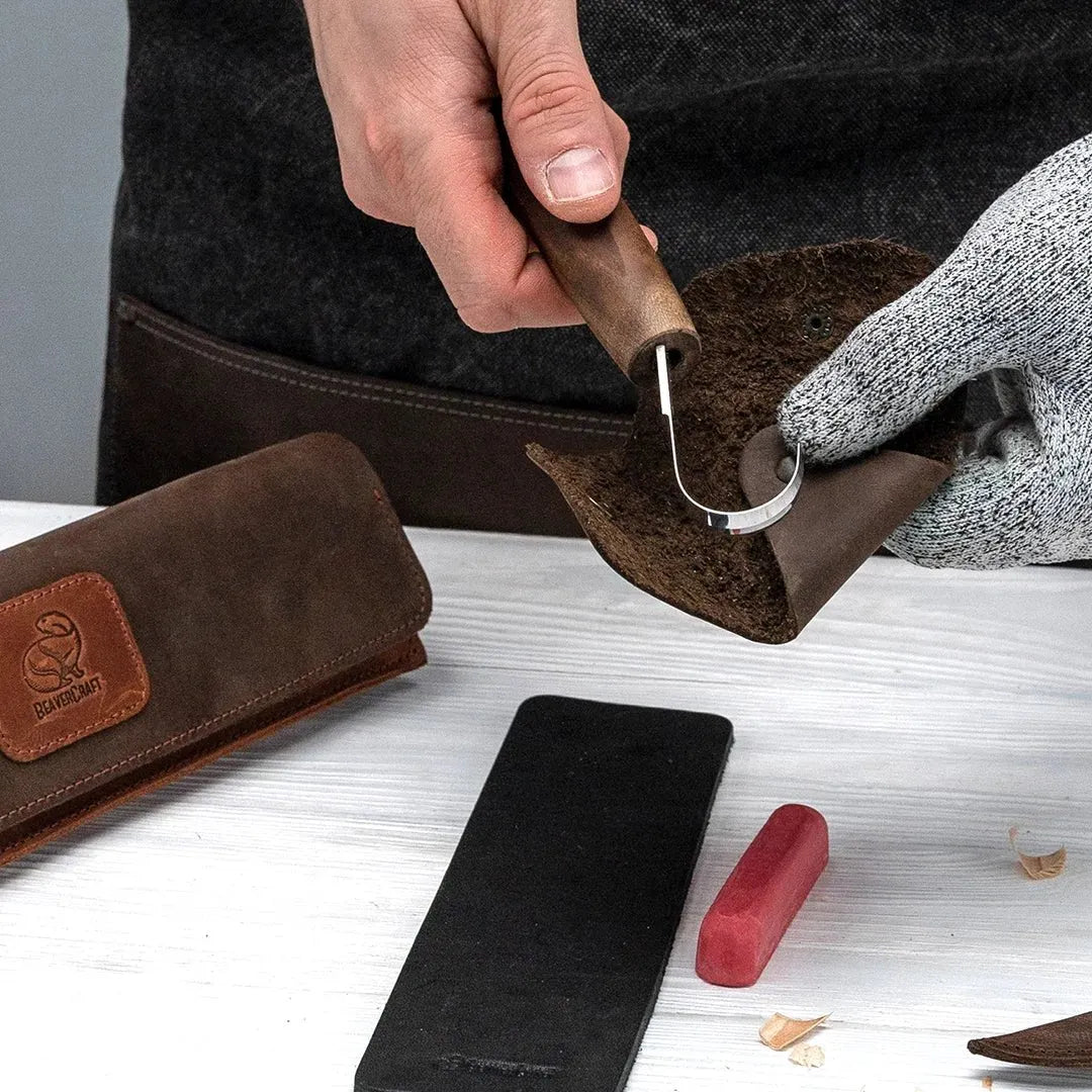 La hoja del cuchillo está fabricada con un alto contenido de carbono. ¡Beaver Craft fabrica todos los cuchillos a mano y la calidad es impecable!