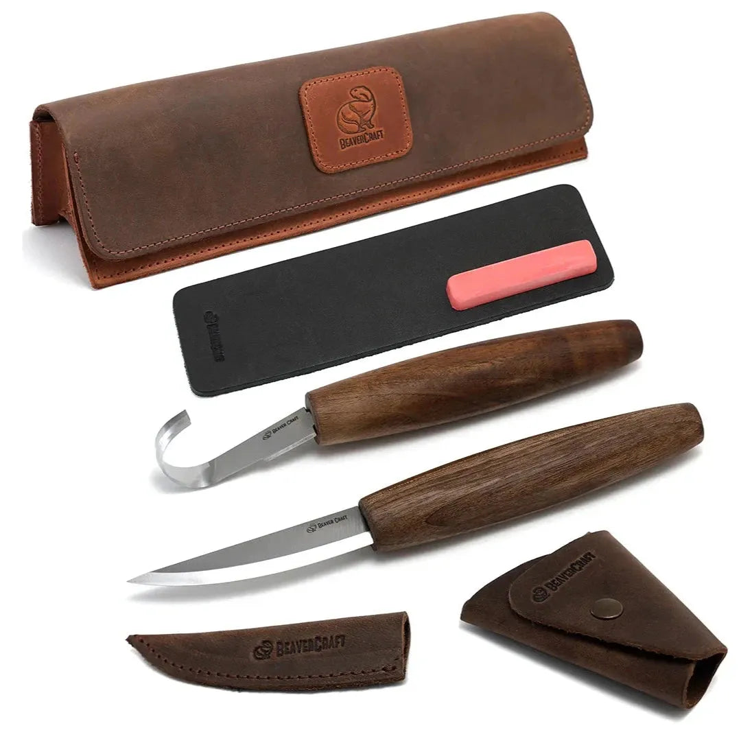¡Cuchillos hechos a mano de Ucrania! El juego S01X es perfecto para quienes desean un buen equipo de corte de madera que les permita cortar tazones y cucharas/cucharones.