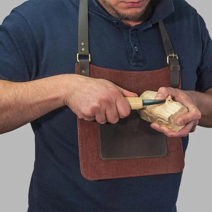 22x24cm y hecho de cuero, protege bien al clavar y cortar madera.