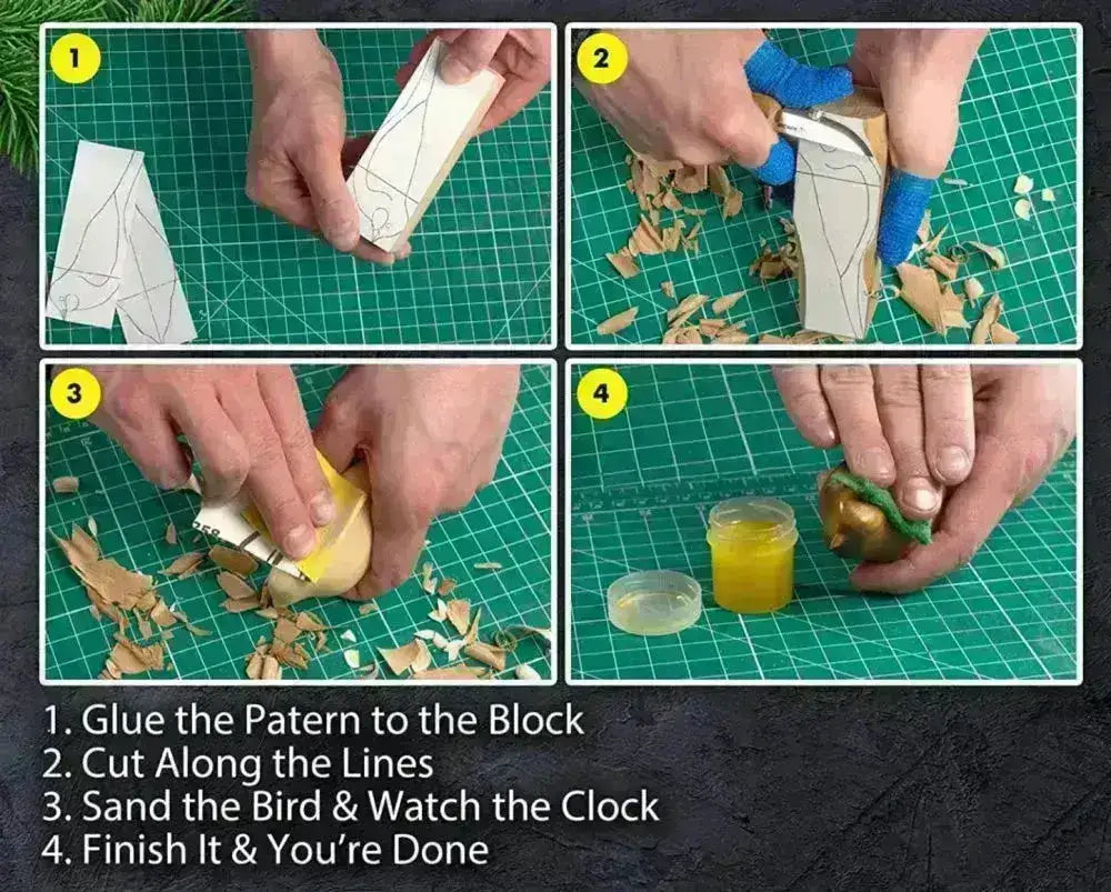 El juego de tallado de madera de pájaro contiene todo lo que necesitas para comenzar a tallar y crear una fantástica figura de madera.