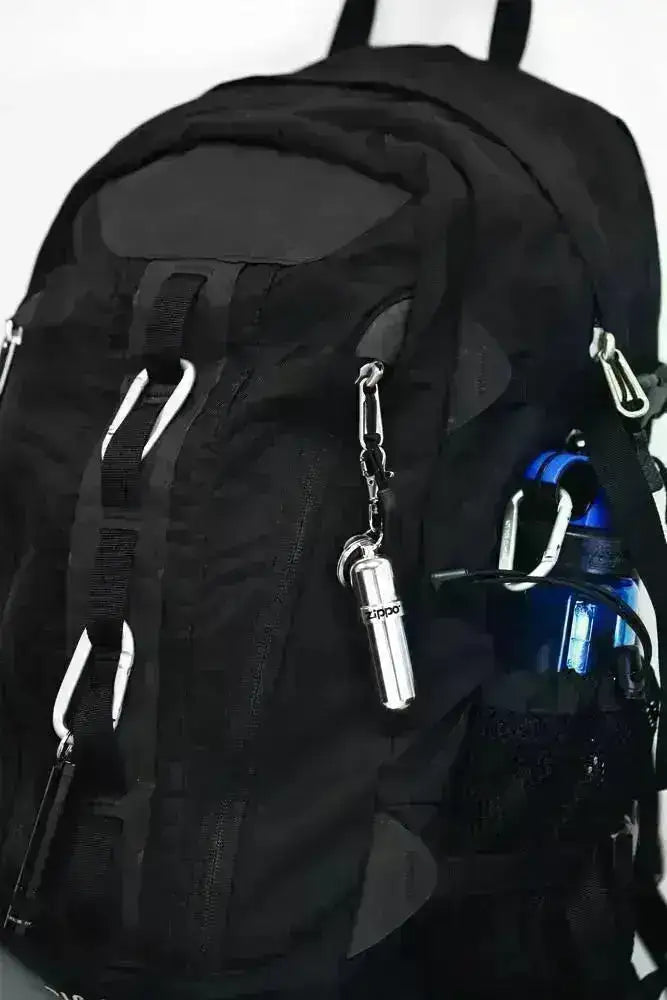 Junto con la cápsula, obtienes un llavero, un gancho, una herramienta para cambiar la piedra Zippo y un compartimento de almacenamiento de goma para piedra adicional.