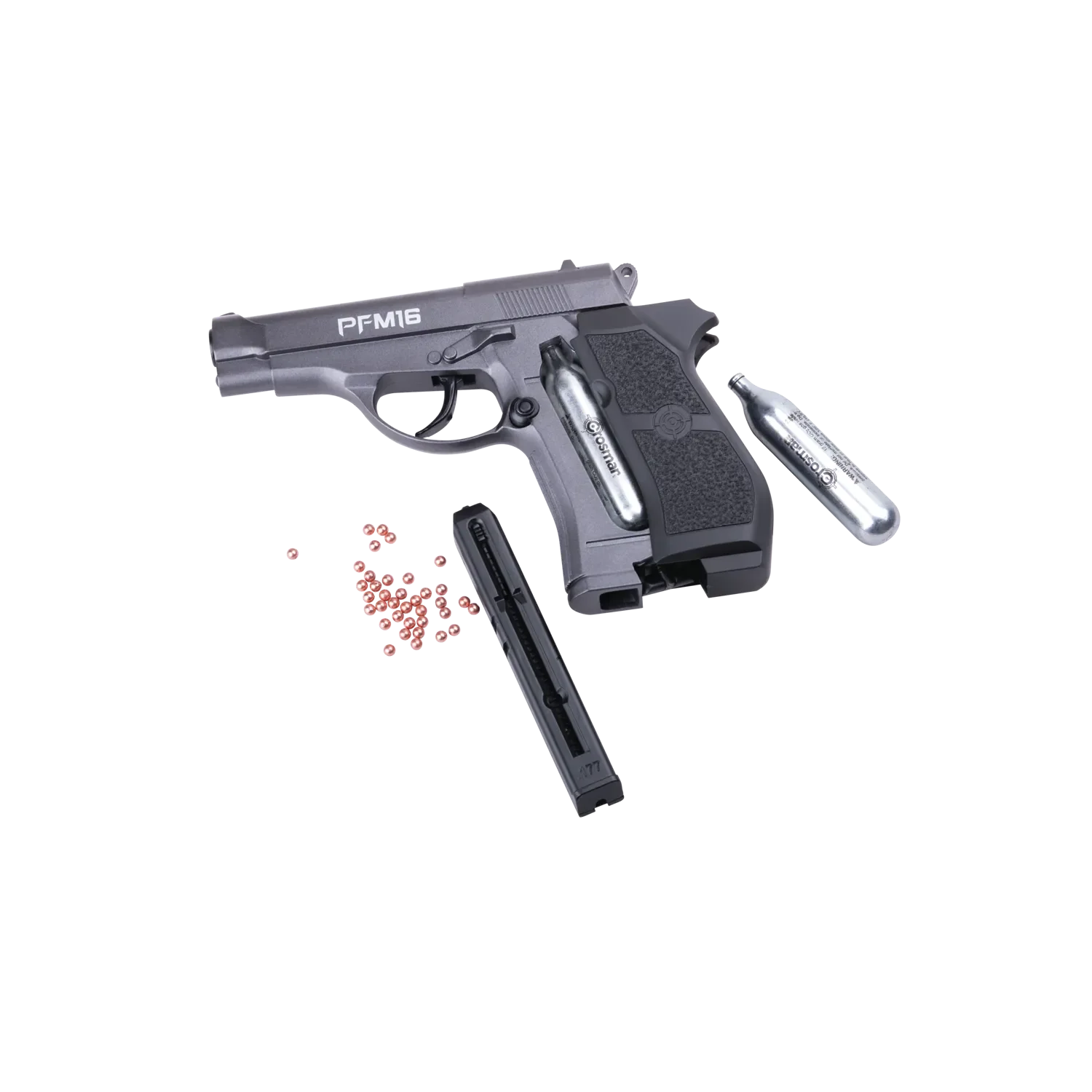 Crosman PFM16 er en kompakt CO2-luftpistol i 4,5mm runde BBs som kombinerer realistisk vektfølelse med enkel og driftssikker bruk. Med full metall konstruksjon og godt balansert grep passer den fint til grunnleggende skyting, teknikktrening og plinking utendørs der det er trygt og tillatt.