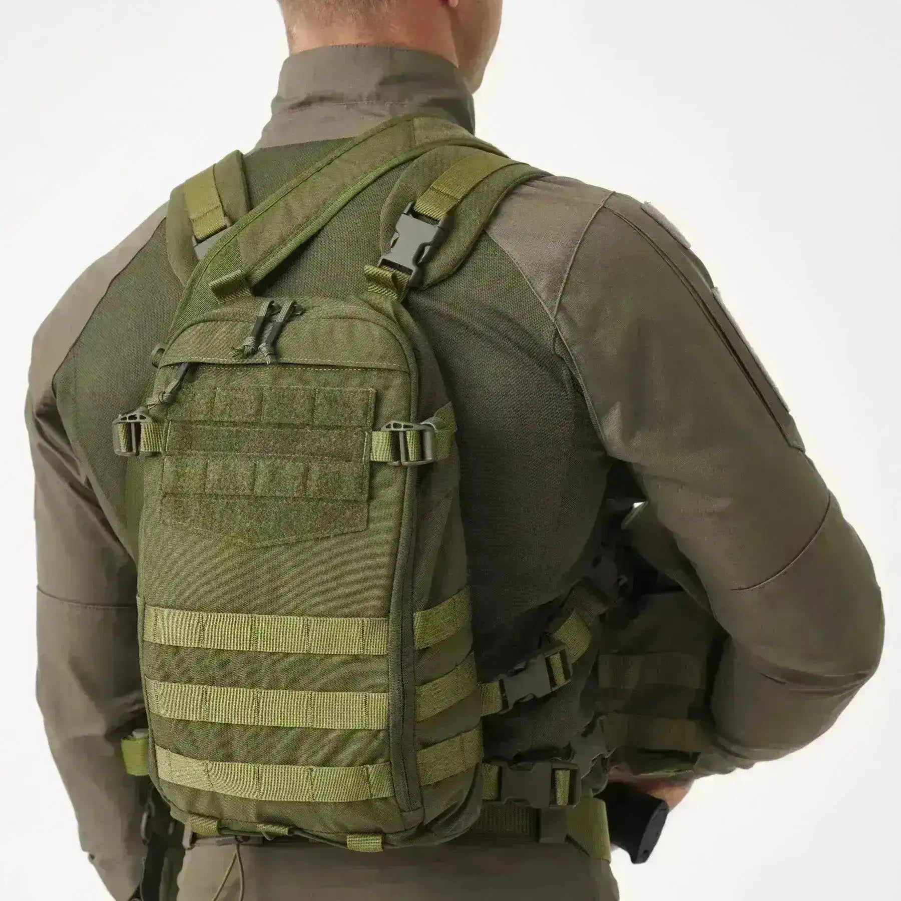 El conjunto MOLLE/PALS en la propia bolsa le permite colocar bolsillos adicionales y hay un parche en la parte delantera.