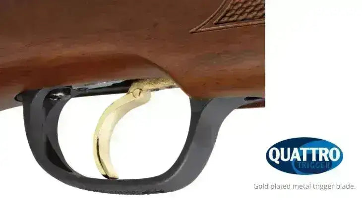La potente carabina de aire comprimido de Hatsan combina un rendimiento superior con un diseño elegante. La culata ajustable de nogal turco garantiza comodidad y control, mientras que el escape chapado en oro proporciona un toque de lujo. Con una impresionante velocidad de salida de 380 m/s y la friolera de 40 julios de energía de impacto, este rifle es ideal para disparos precisos con flash a distancias cortas y largas.