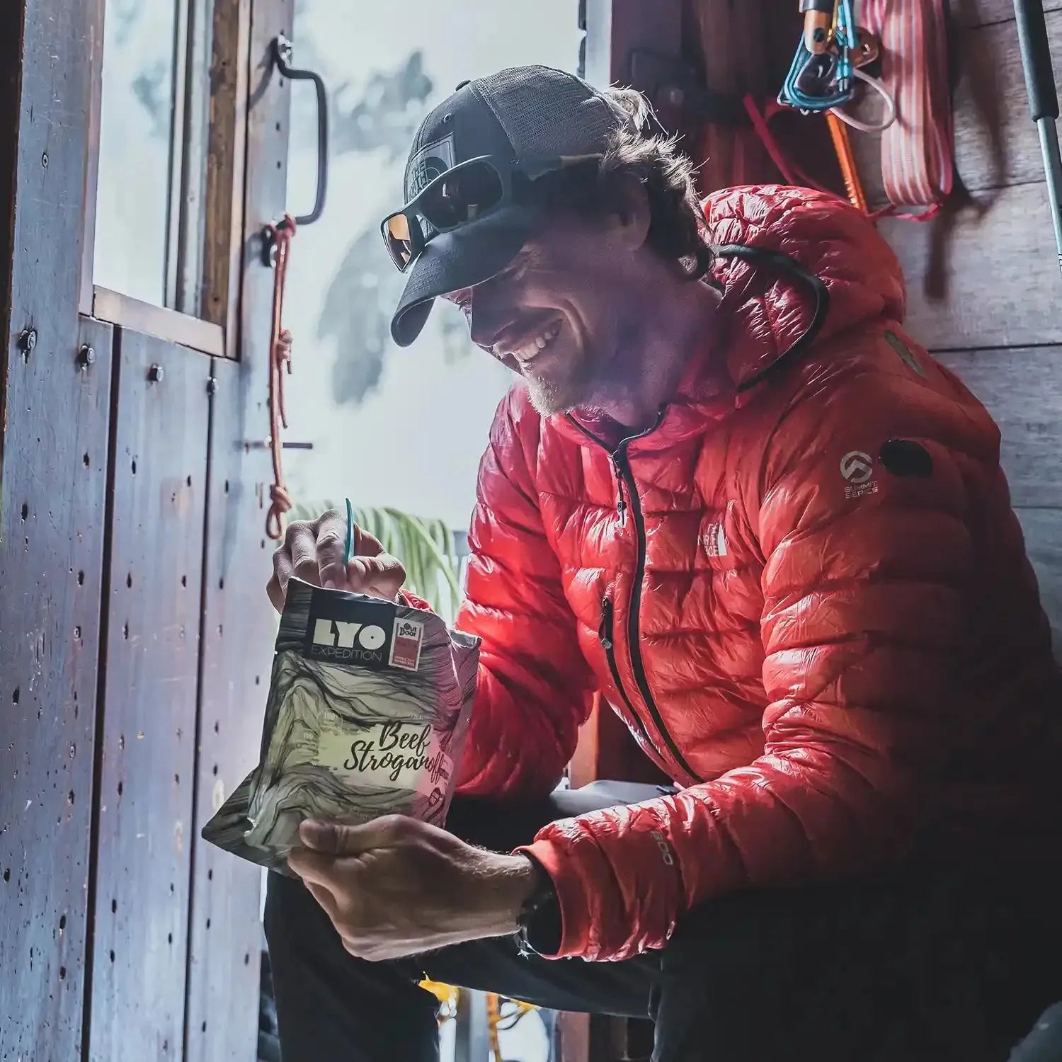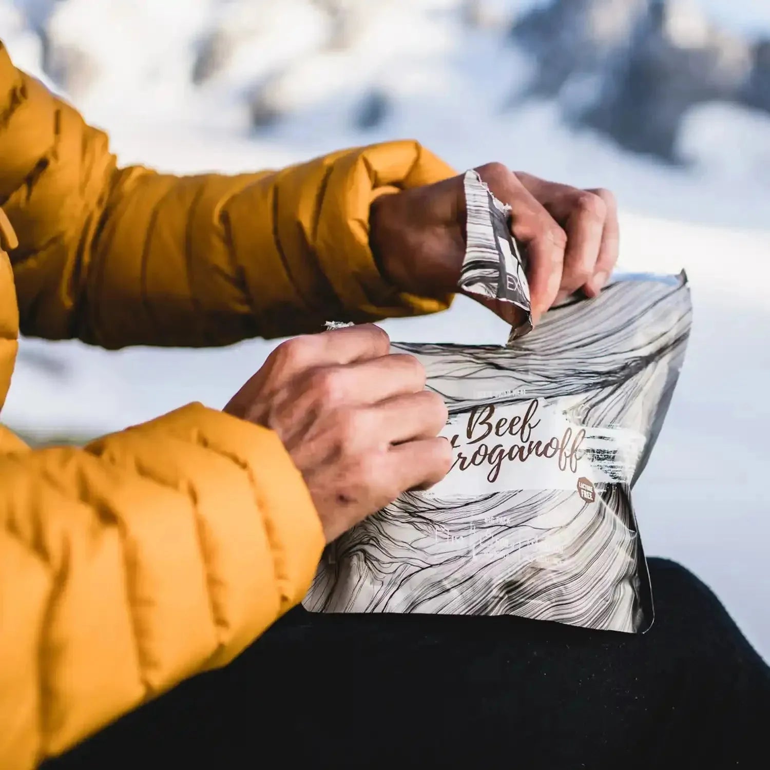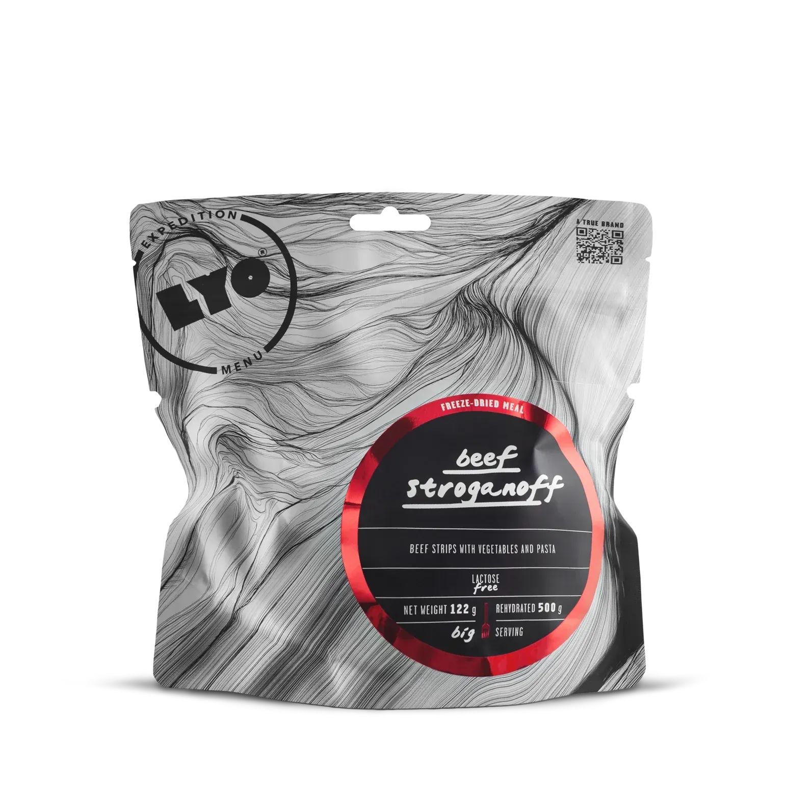 LYOFOOD Beef Stroganoff gir deg smaken av en ekte kremet biffgryte på tur. Retten kombinerer møre biffbiter, ris, sopp og en fyldig paprikasaus – laget med 100 % naturlige ingredienser uten kunstige tilsetningsstoffer. Perfekt for deg som trenger en større, kraftigere porsjon etter lange dager på fjellet, jakt eller ekspedisjoner. Frysetørket for lav vekt og lang holdbarhet.