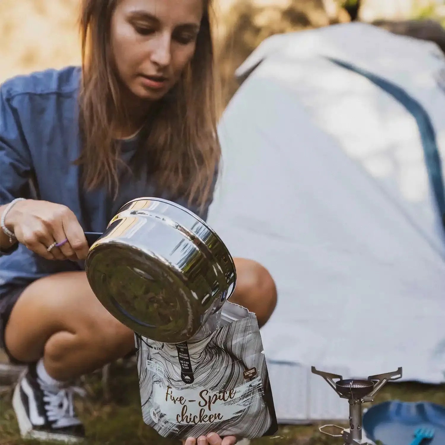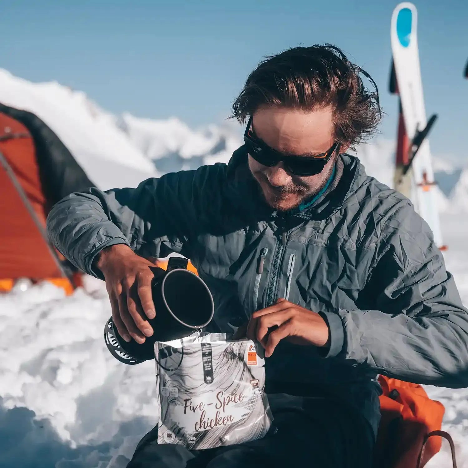 Hell kokende vann rett i posen, rør godt og vent 8 minutter – nyt en smakfull, varm middag uansett hvor du er. Perfekt for fjelltur, ekspedisjoner eller camping.