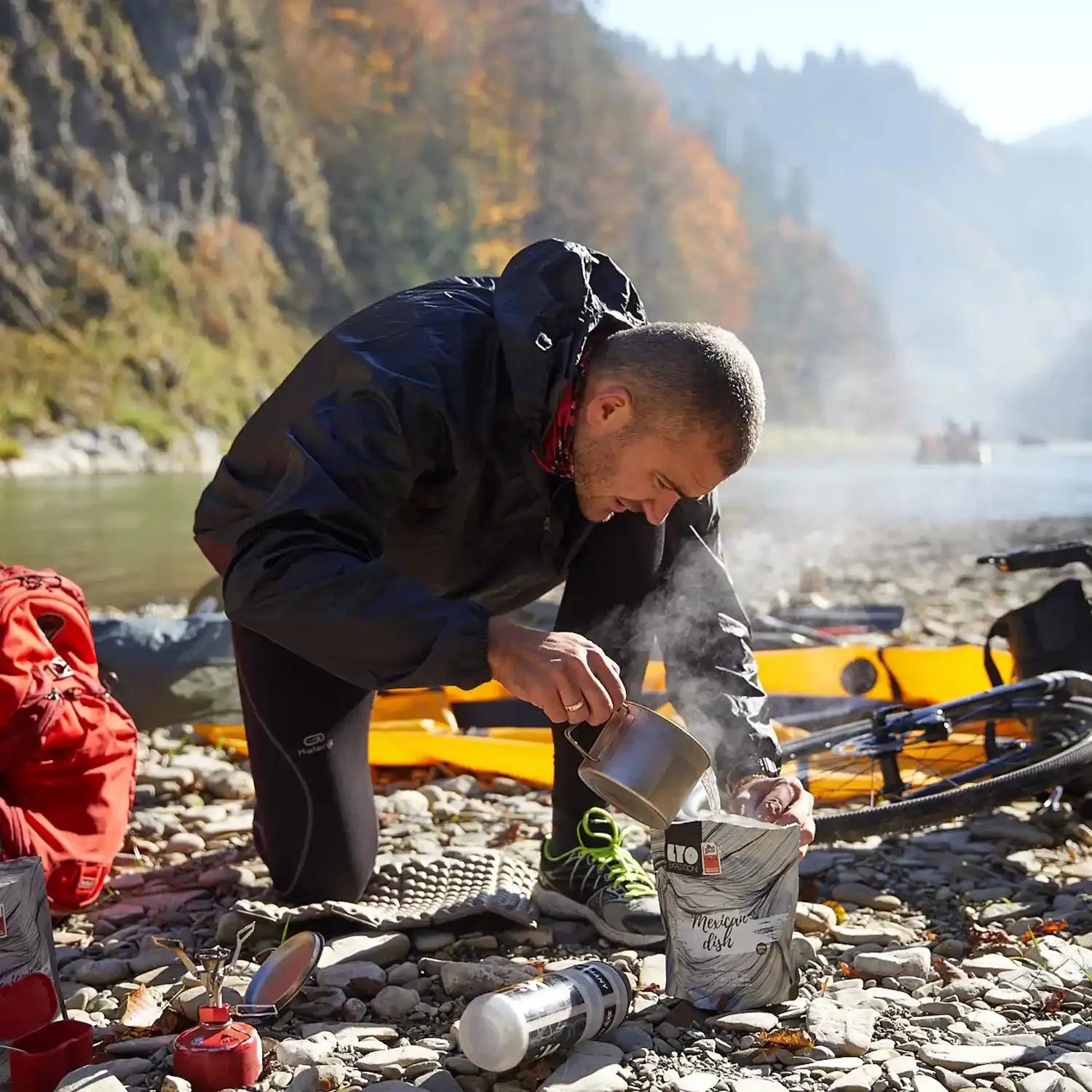 Tilsett kokende vann i posen, rør godt og vent 8–10 minutter. Nyt en krydret, lettvekts middag på fjellet, på campen eller underveis på eventyret.