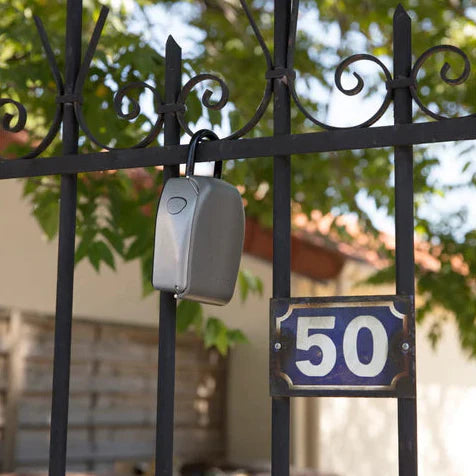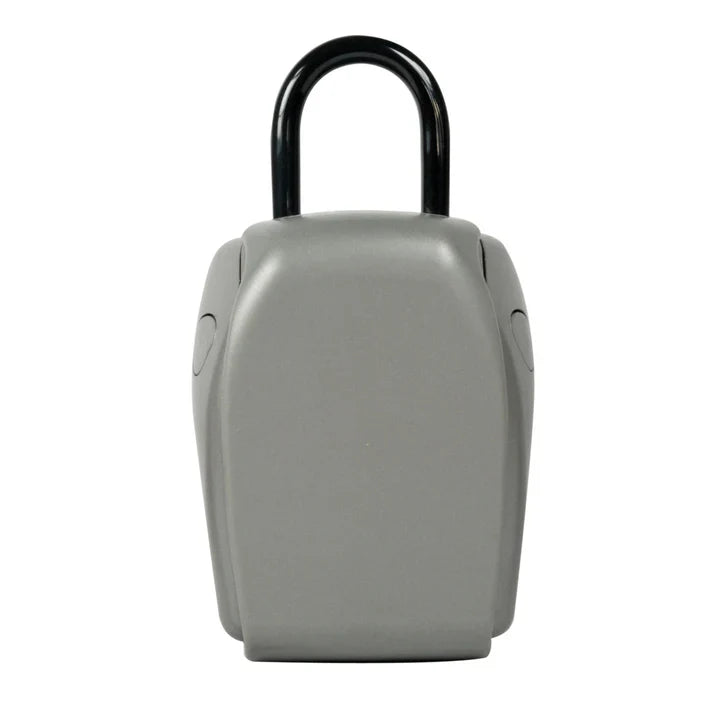 Nøkkelboksen har 4-sifret kode (sett din egen kombinasjon) og en bøyle for enkel, portabel montering der det passer best. Den har også en værbeskyttende cover som skjermer koden mot vær, skitt og støv.