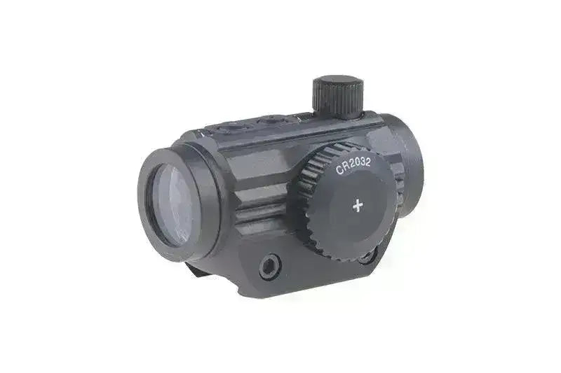Mira de punto rojo pequeña y compacta con montura de 21 mm. La carcasa del visor es completamente de metal y el visor utiliza 1 batería CR2032.