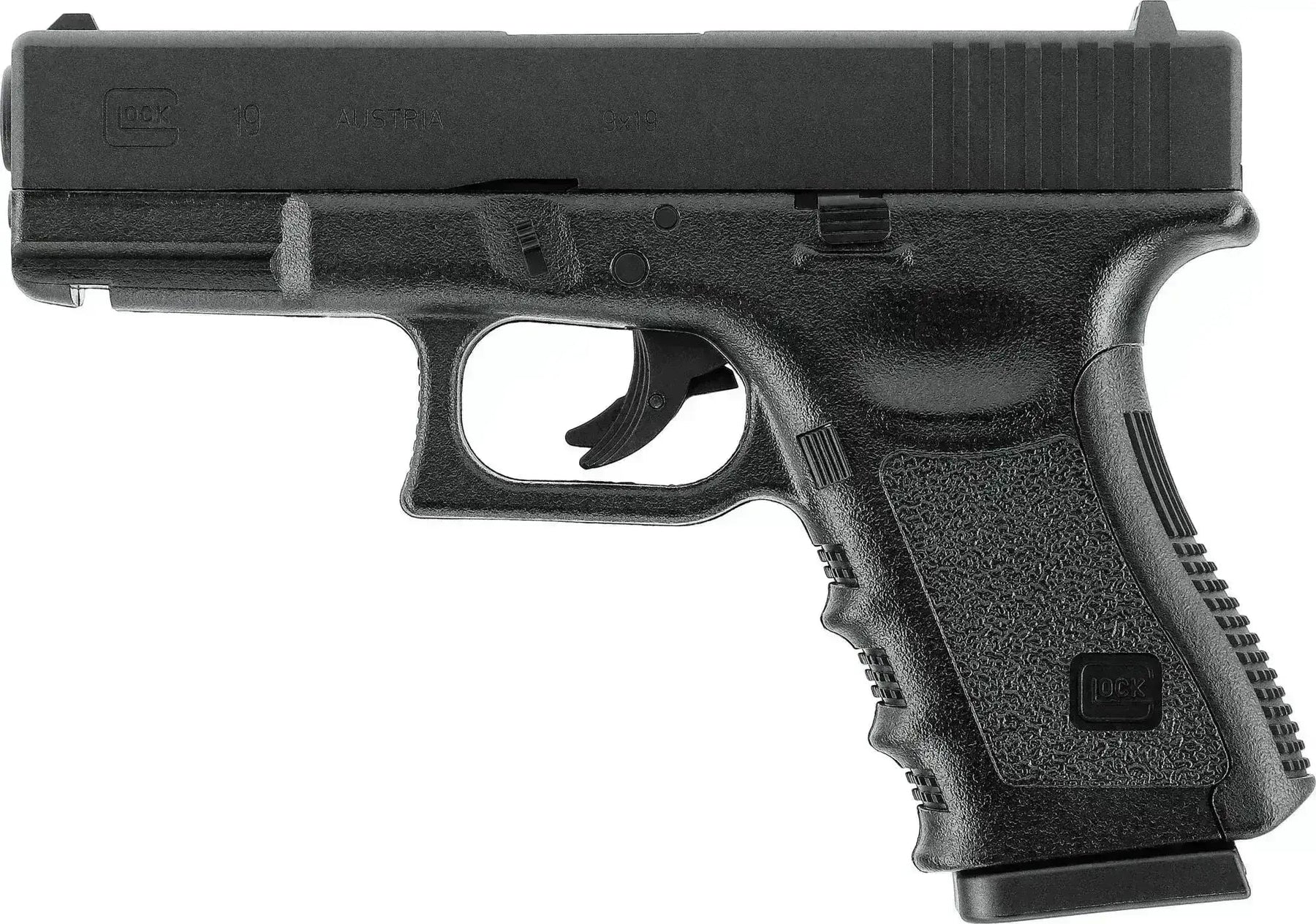 El modelo original Glock 19 (G19) está basado en el modelo 17 de Glock, pero con un marco más pequeño, un cañón más corto y una menor capacidad de cargador. En apariencia, es idéntica a la Glock 23, Glock 25 y Glock 32. El modelo G19 es fabricado por la empresa austriaca Glock y salió al mercado por primera vez en 1982 y desde entonces se han producido más de 5 millones de este modelo. Esta versión de pistola de aire comprimido es ideal para tiro al blanco y plinking. Queda muy bien como decoración en el estante y es un gran objeto de colección.