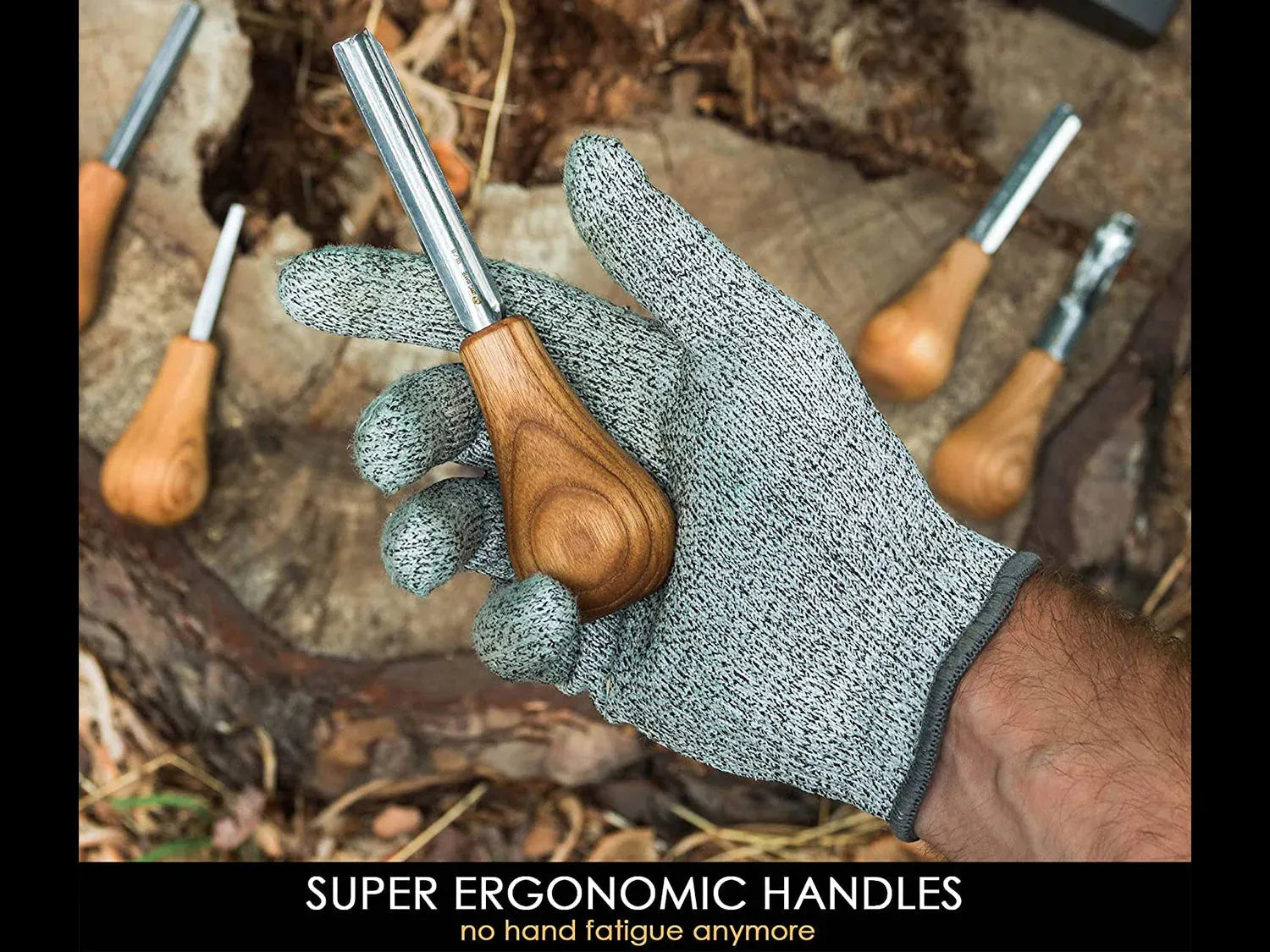 Las herramientas para tallar palma de BeaverCraft son herramientas manuales versátiles que se utilizan para dar forma, alisar, terminar, contornear, tallar diseños intrincados, esculpir y detallar en carpintería.
