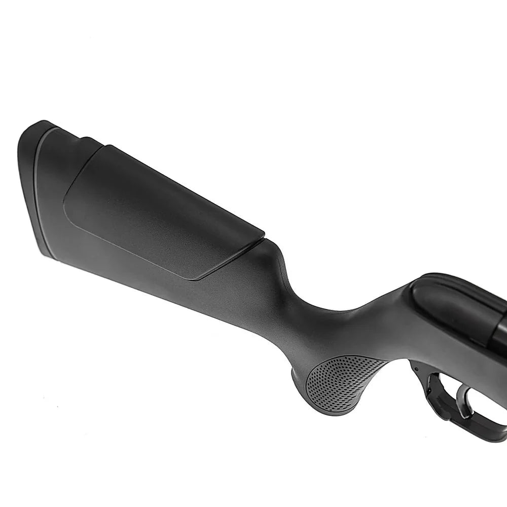 Den syntetiske Monte Carlo-kolben er ambidekster og passer både høyre- og venstrehendte skyttere. Teksturert grep og forskjeft gir bedre kontroll, mens en gummiert kolbekappe bidrar til stabil skulderstøtte.
