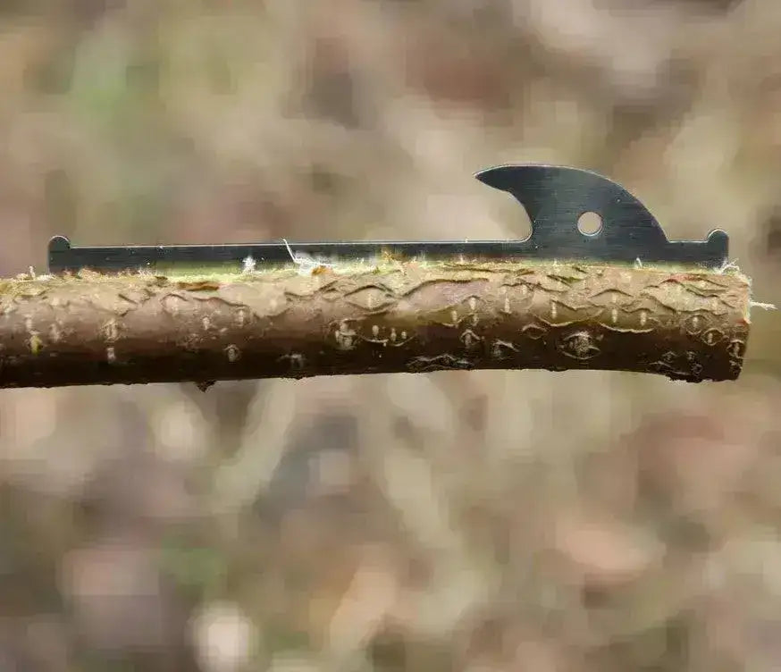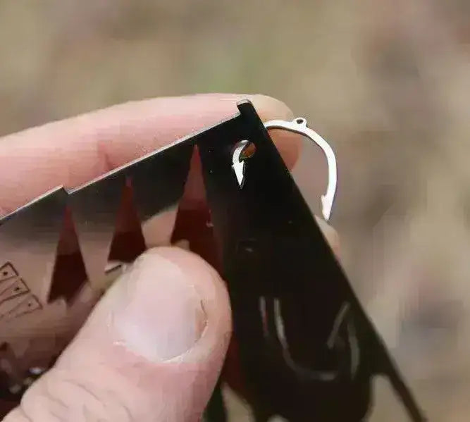 ¡La sierra y el cuchillo en los extremos de la tarjeta son útiles para hacer cañas de pescar improvisadas, lanzas de pesca y mucho más!