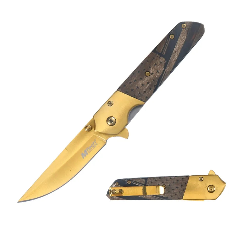 Gullfarget foldekniv med trehåndtak – MTech MT-A2004BG