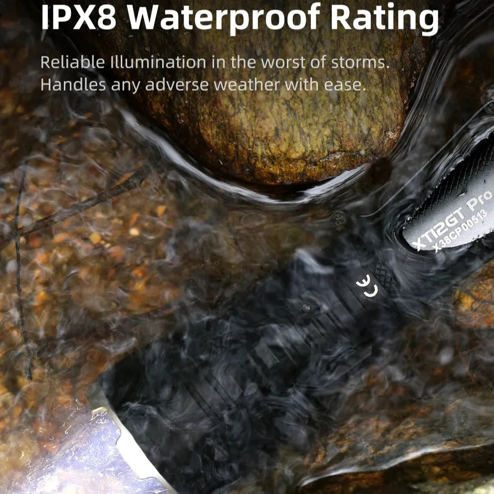 Med en maksimal driftstid på 288 timer, trenger du ikke bekymre deg for strømmen på lange ekspedisjoner. XT12GT PRO er bygget for å tåle tøffe forhold, med en slitesterk aluminiumslegering og vanntett design i henhold til IPX8-standard.
